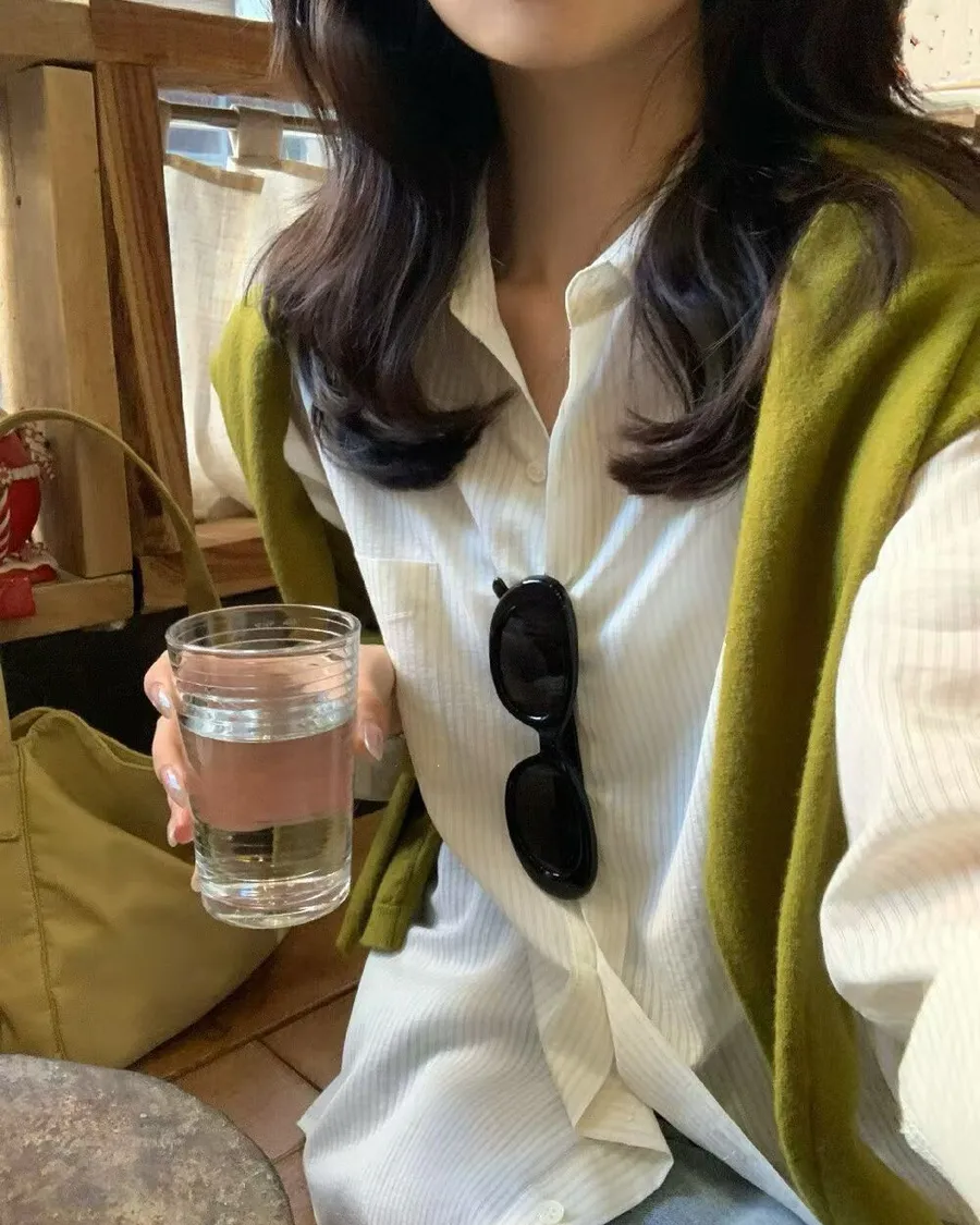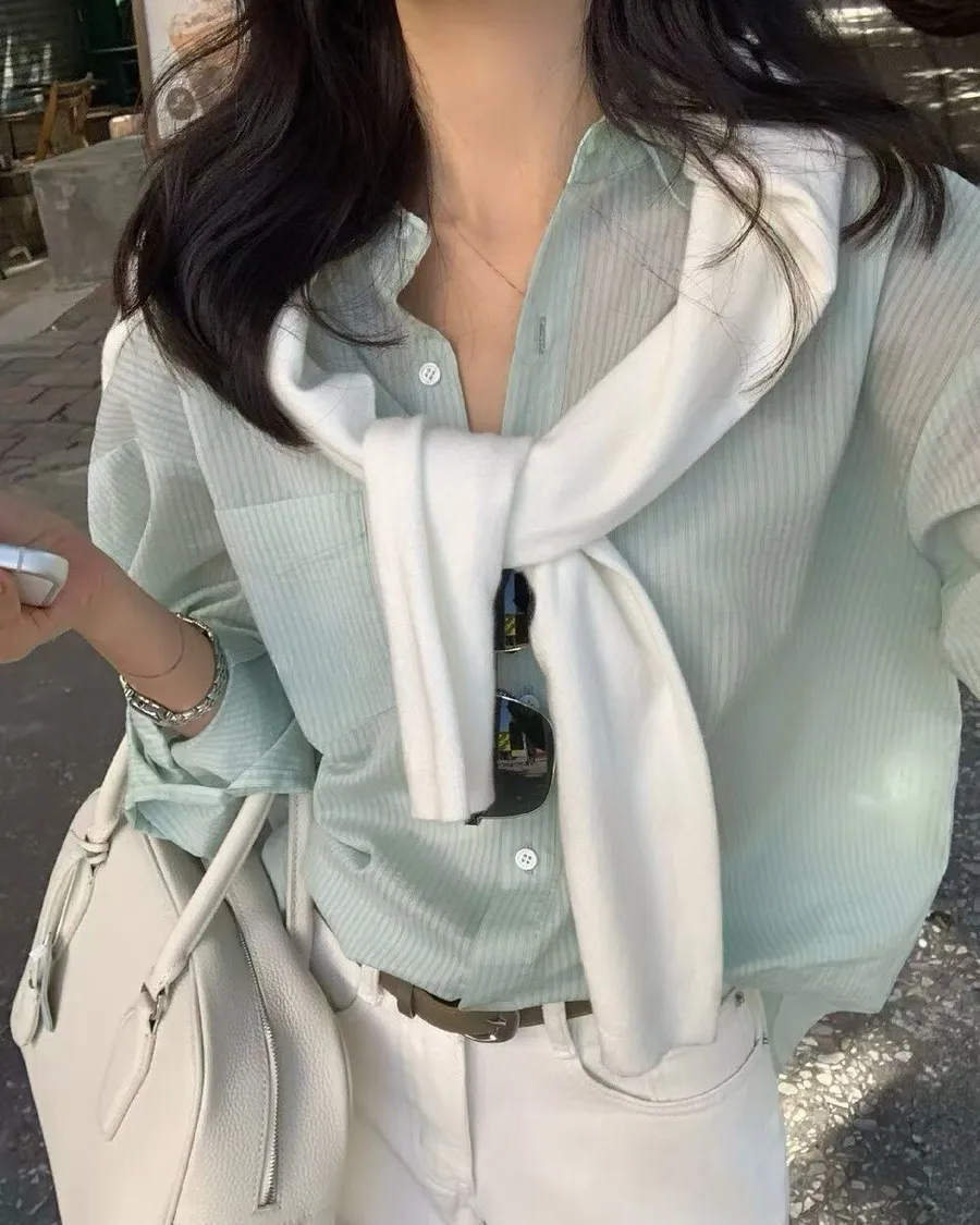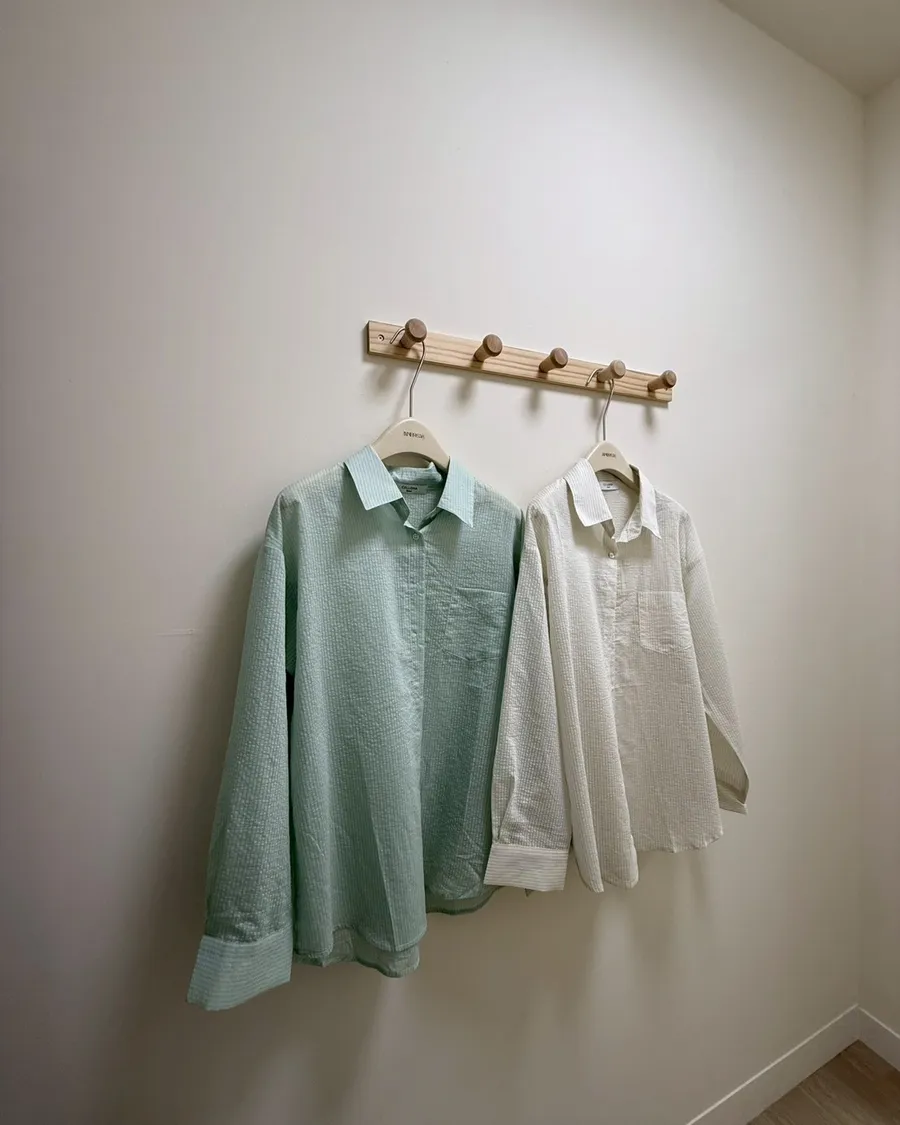 直條紋微皺薄襯衫
