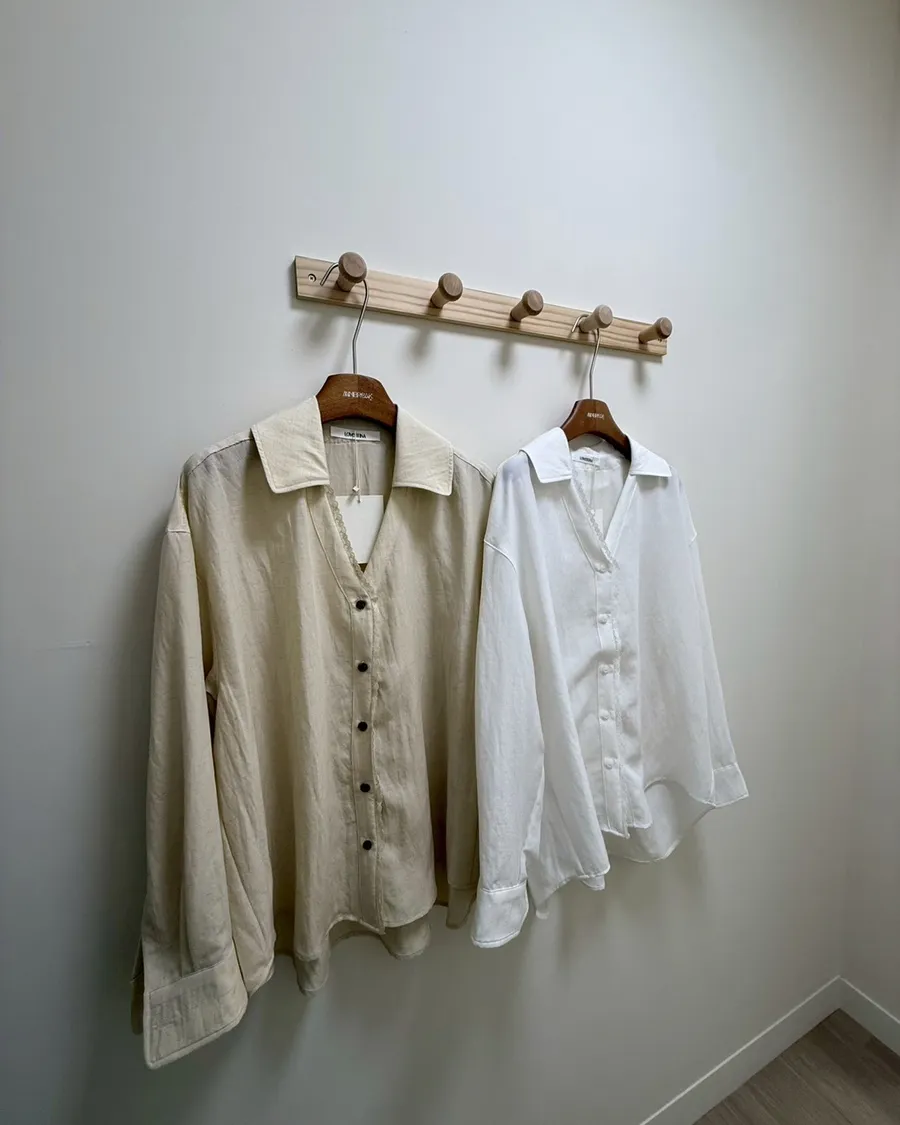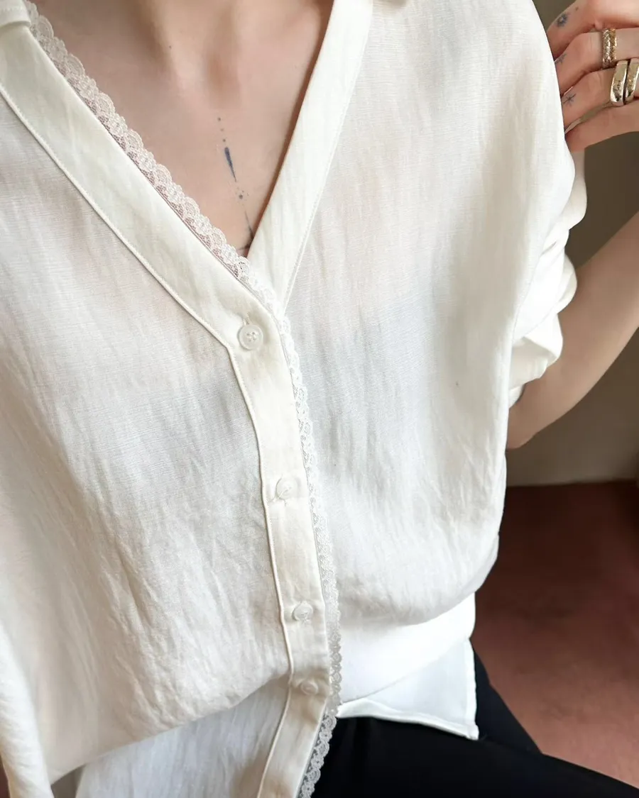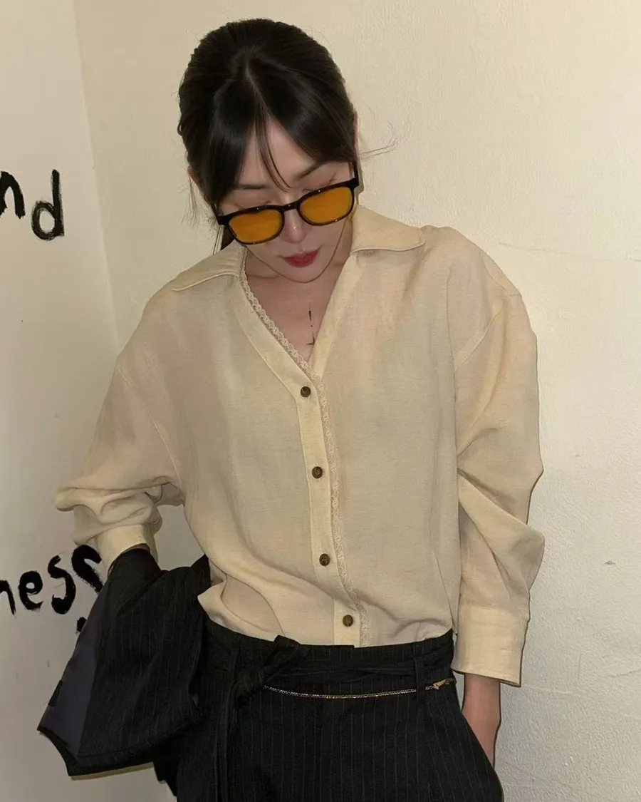 正韓單邊蕾絲氣質襯衫